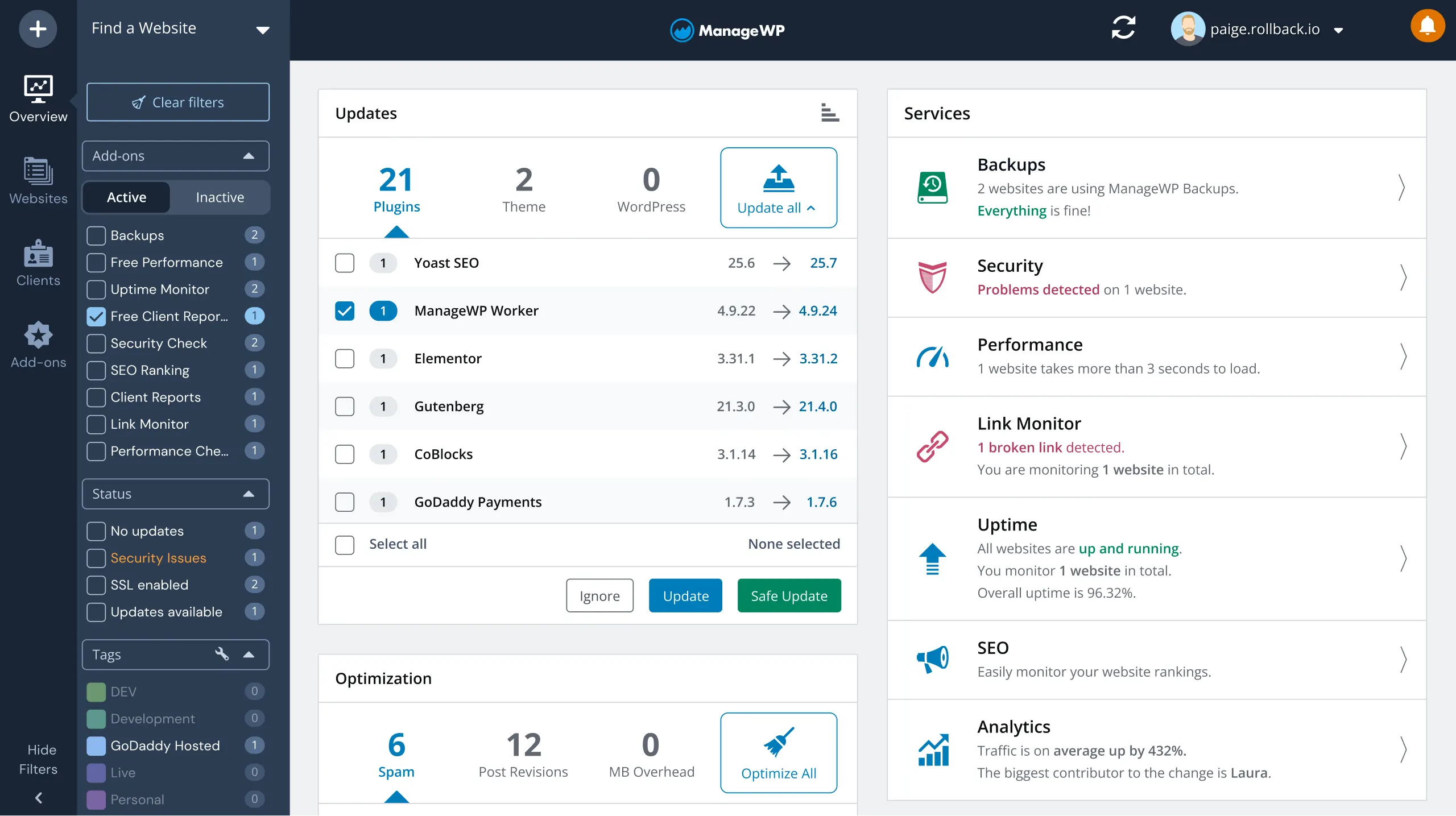 Effortlessly monitor and maintain all your WordPress websites from a single, user-friendly dashboard.