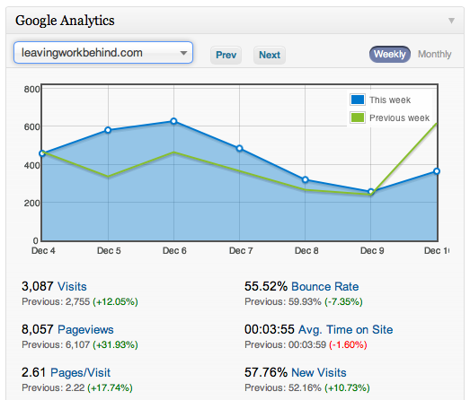 Alternatively, ManageWP users can integrate Google Analytics with our platform. You can then view your client’s Google Analytics data directly from your ManageWP dashboard: